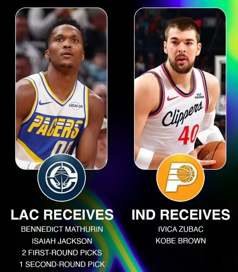 我们让时间回到交易截止日,祖巴茨不出意外地被送走了,快船打包祖巴茨和科比-布朗,从步行者交易得到马瑟林、以赛亚-杰克逊和2个首轮签1个次轮签。